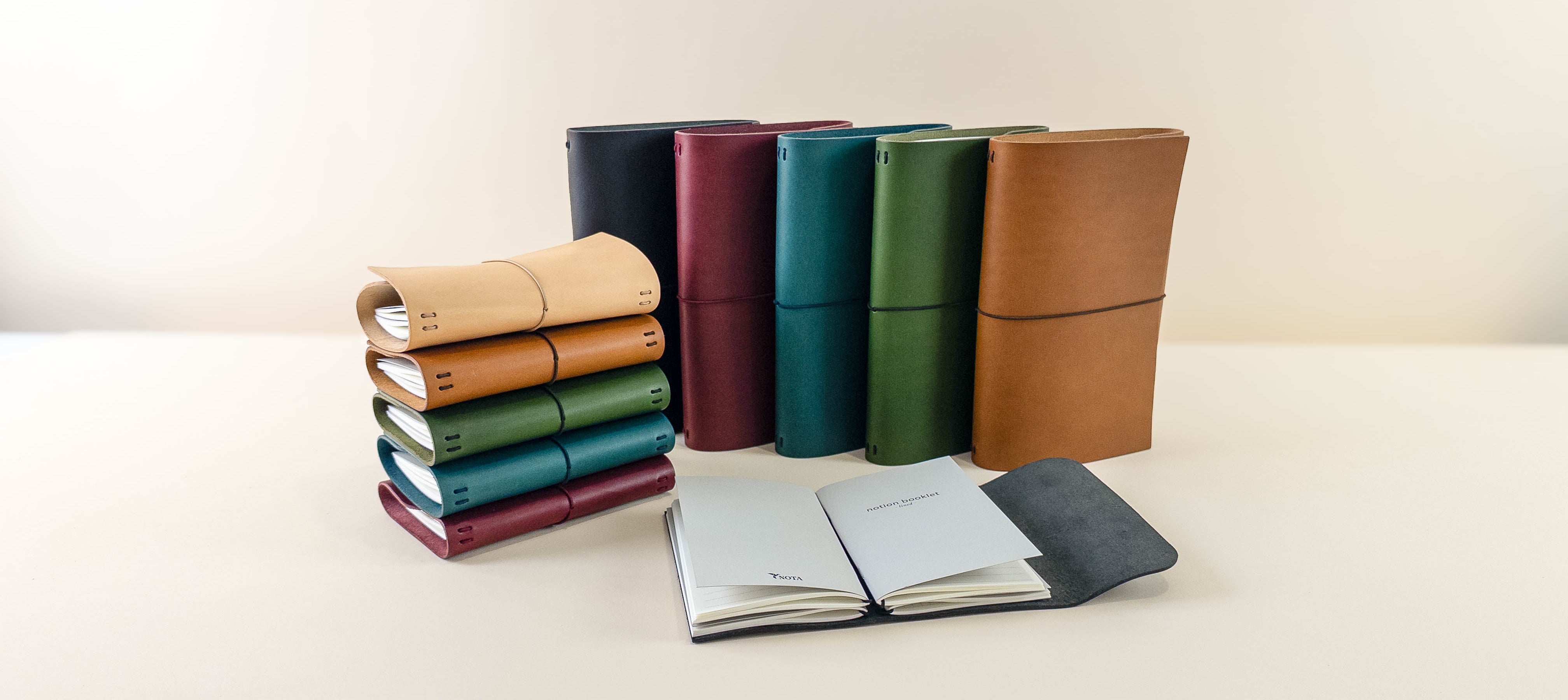 Nota is a leather workshop where we make journals for long term use. Each piece is made in-house using durable materials and a clean design focusing on details and practical use.